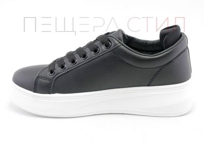 Дамски кецове на дебело, гумено ходило и горна част от еко кожа. Класически спортни обувки в черен цвят с бяло ходило.