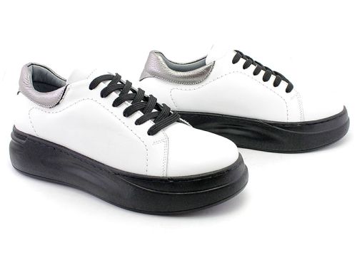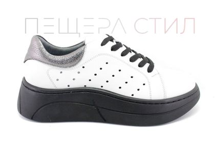 Дамски маратонки изработени от естествена, мека кожа в бял цвят с цялостна перфорация включително и хастара. Шито ходило.