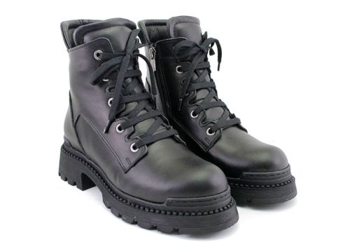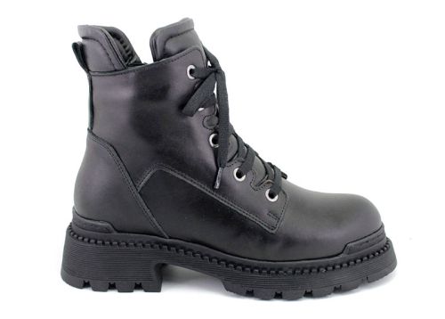 Дамски ниски боти от естествен лак в черно - Модел Бианка