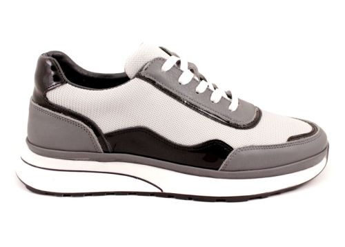 Мъжки летни обувки Селено от естествена кожа – без връзки, сиво и тъмносиньо