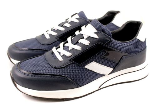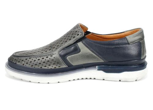 Мъжки летни обувки от естествена кожа Лоренцо – тъмносиньо със сиви акценти