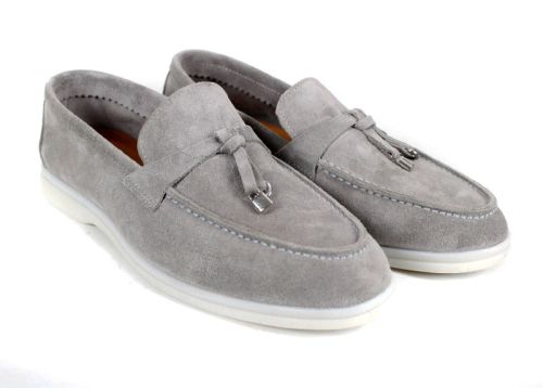 Мъжки мокасини от естествен велур в сиво - модел Оазис