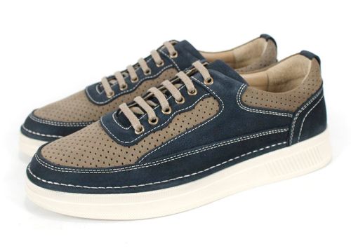 Мъжки ежедневни летни обувки от естествен набук в синьо и бежово - Модел Tramonte