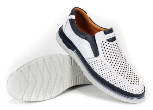 Мъжки мокасини от естествена кожа с перфорация в бяло - модел Milano Classico