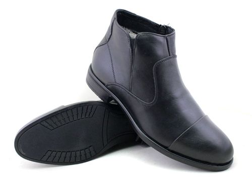 Мъжки боти от естествена кожа със странични ластици в черно модел Мето