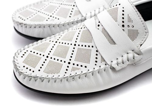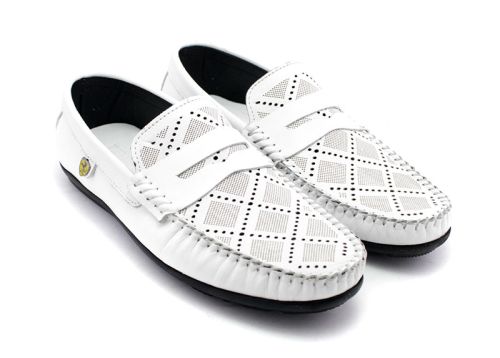 Мъжки мокасини от естествена кожа в бяло - Модел Понтиак.