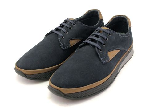 Мъжки мокасини от естествен набук в тъмно синьо - Модел Дариус