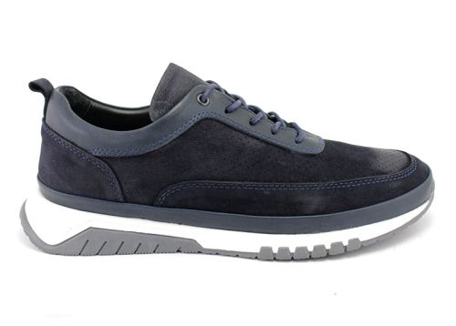 Мъжки, ежедневни обувки от естествен набук в тъмно синьо - Модел Кронос.