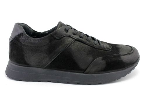 Мъжки спортни обувки от естествен набук в черен цвят с каучуково ходило - модел Elite Motion