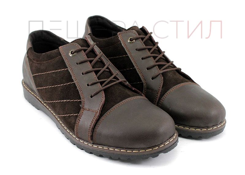 Мъжки ежедневни обувки изработени от естествена, "крейзи" кожа и велур. Цвят кафяв.