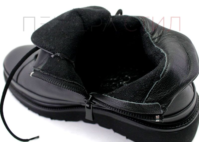 Дамски боти спортен стил изработени от естествена, мека кожа на ниско, олекотено ходило. Ботите са с цип и ластични връзки, което спомага за бързо и лесно обуване.