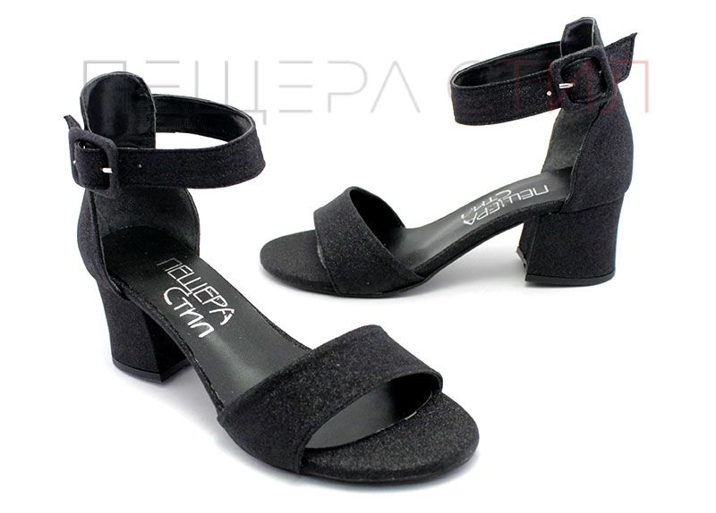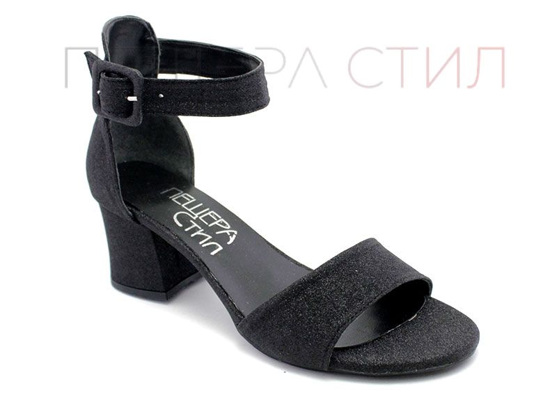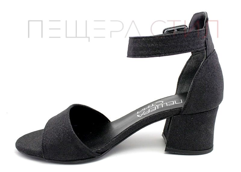 Дамски сандали от изкрящ еко материал в черно - Модел Вега.