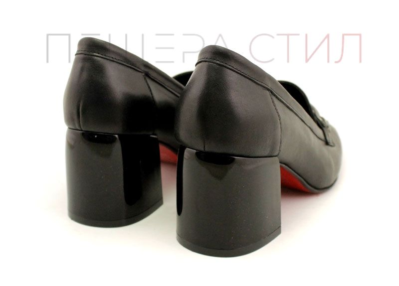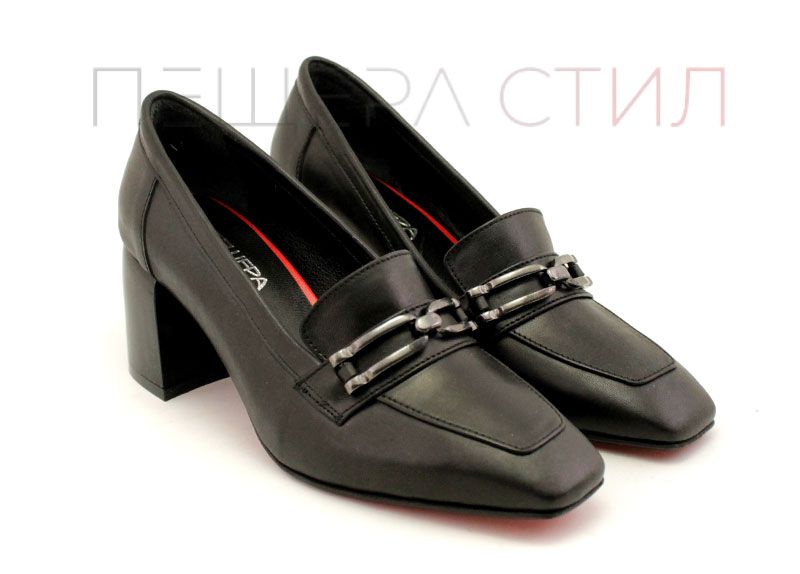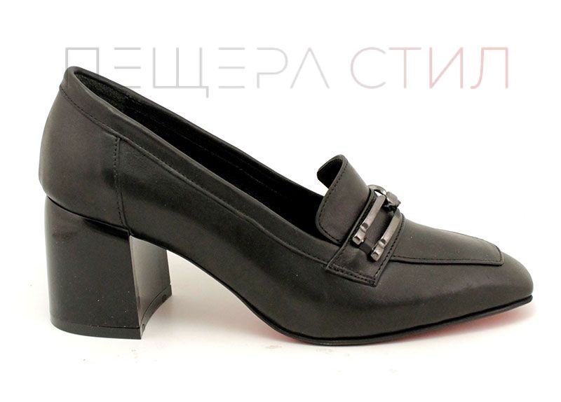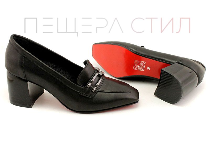 Дамски официални обувки изработени от естествена, матова кожа в черен цвят. Обувките са изпробвани, добре стоят на крака, добре изглеждат и са удобни при носене с добре пасваща извивка на свода.