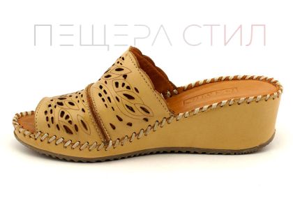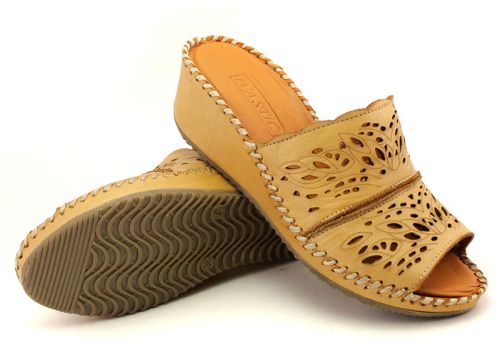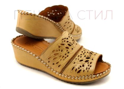 Дамски чехли от естествена кожа в цвят капучино - Модел Асмара.