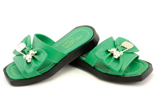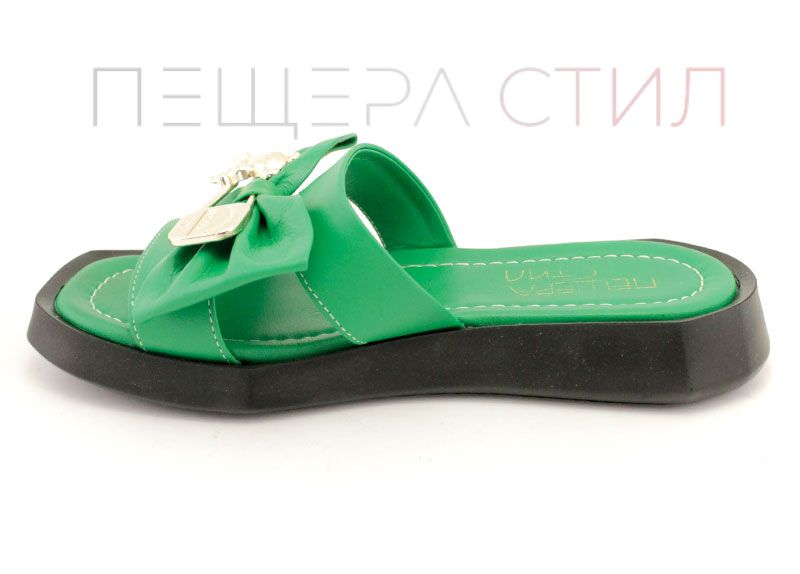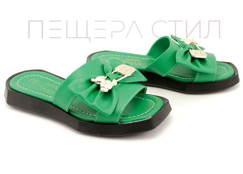 Дамски чехли от естествена кожа в зелено - Модел Анджелина.