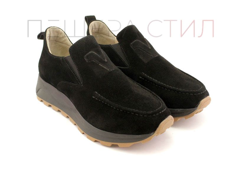 Дамски спортни обувки без връзки, изработени с изключително внимание към комфорт и качество. Те са произведени от висококачествен естествен велур, предоставяйки мекота и елегантен външен вид.