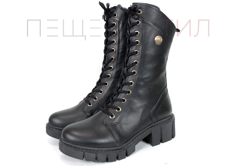 Дамски боти от естествена кожа в черно - Модел Макарена.