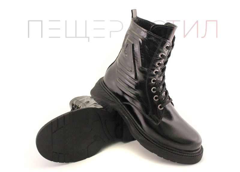 Дамски кубинки от естествен лак в черно - Модел Люсил
