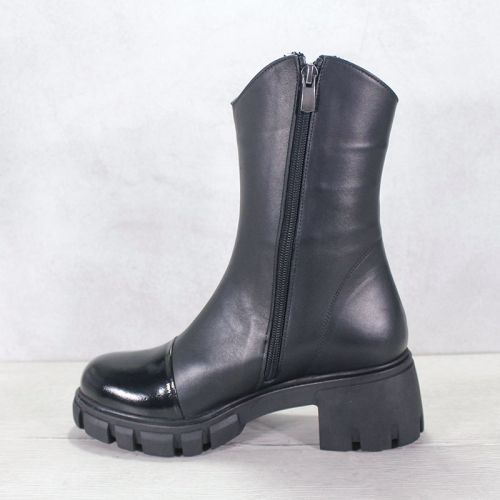 -Дамски високи боти от естествена кожа в черно - Модел Пам