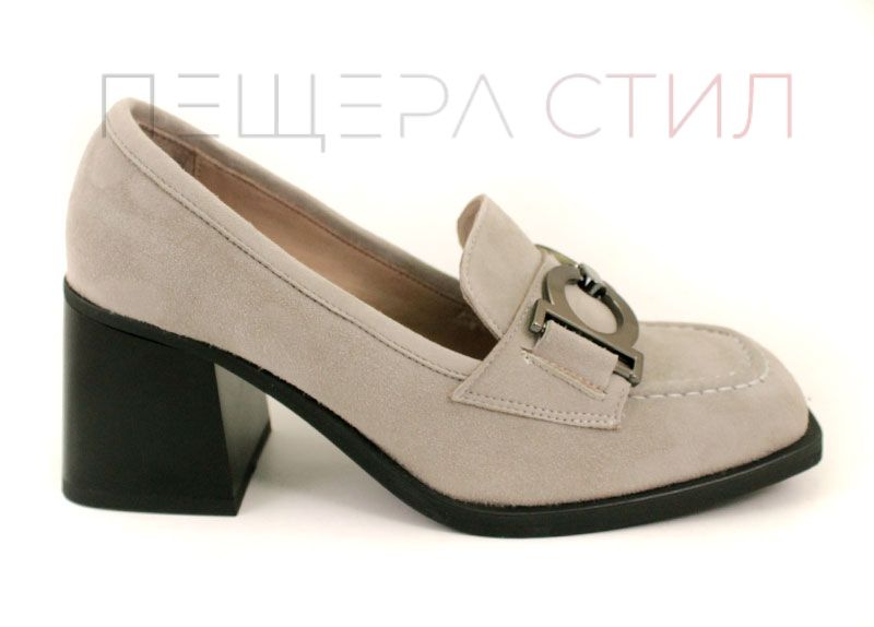 Дамски официални обувки от естествен велур в сиво - Модел Аурелия