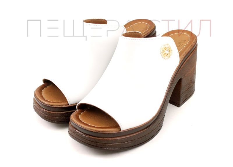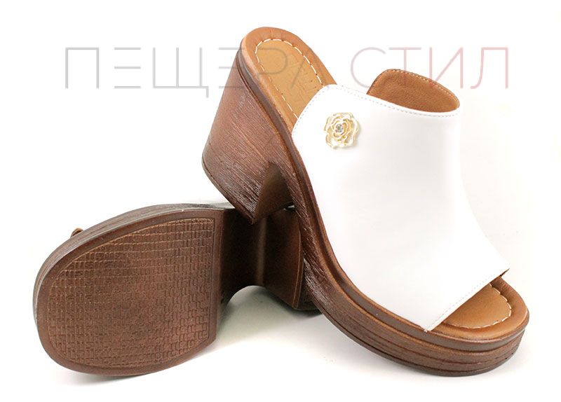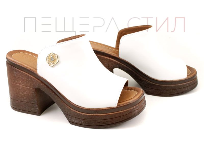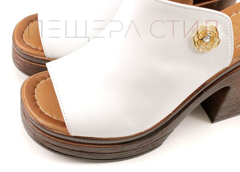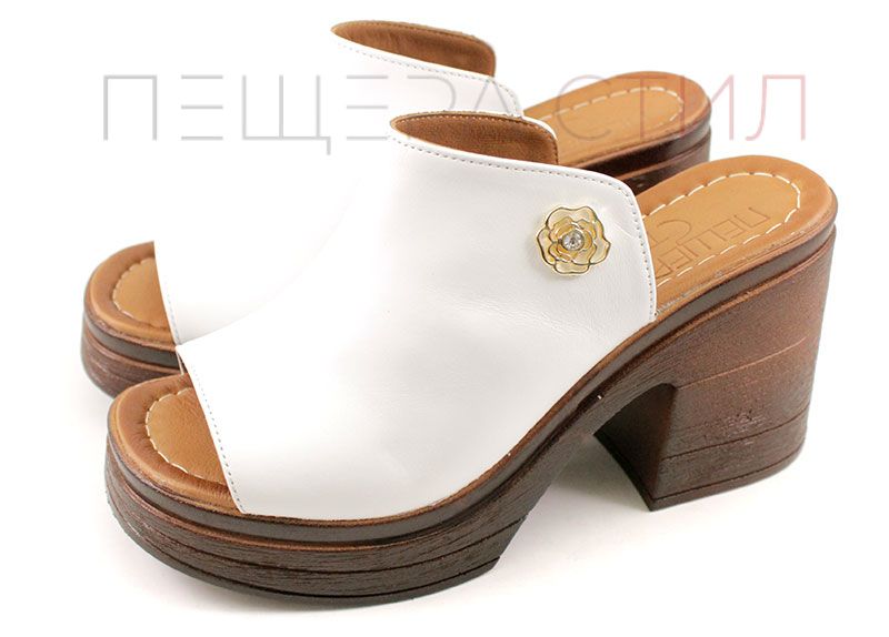 Дамско сабо от естествена кожа в бяло - модел Корнелия