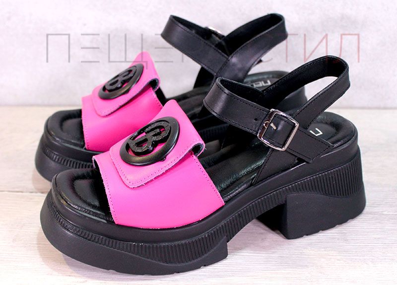 Дамски сандали от естествена кожа в черно и цикламено - модел Камелия.