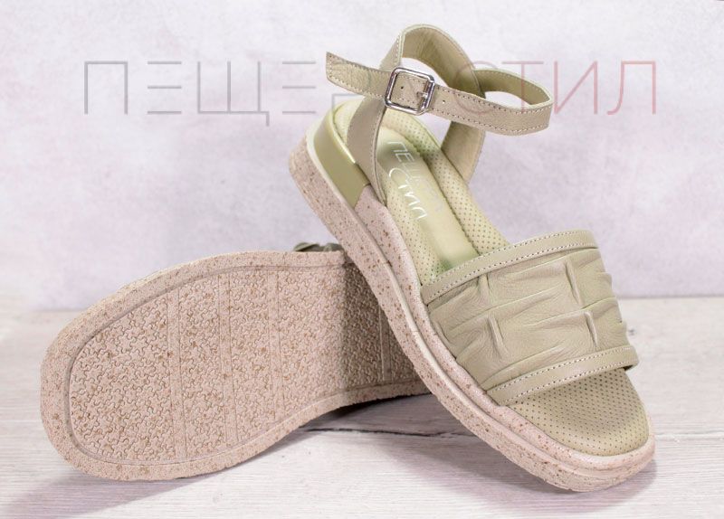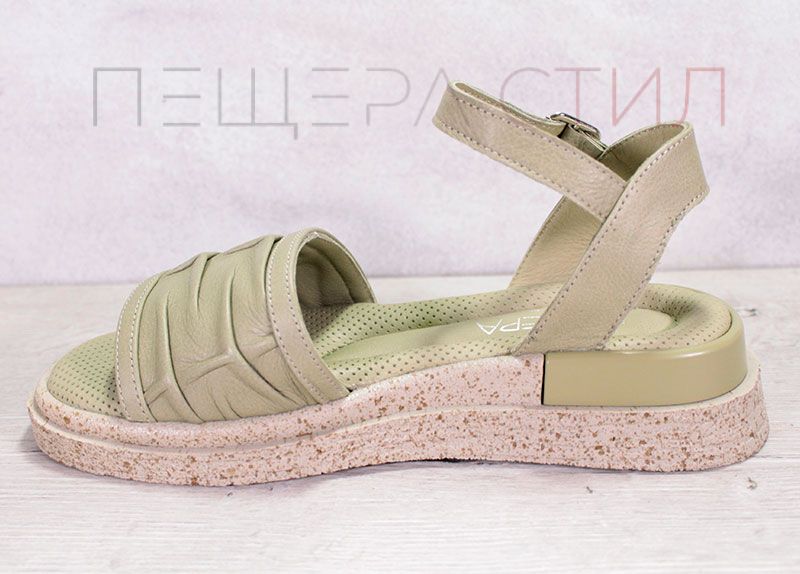 Дамски сандали от естествена кожа в резедаво зелено - модел Селена