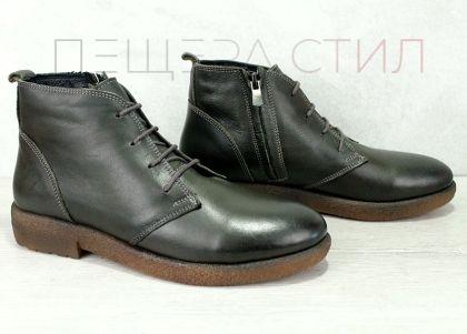 Дамски кларкове в ефектен тъмно зелен цвят със състарен ефект. Изработени от висококачествена естествена кожа, с топъл хастар за комфорт през студените дни и каучуково ходило за устойчивост и гъвкавост.