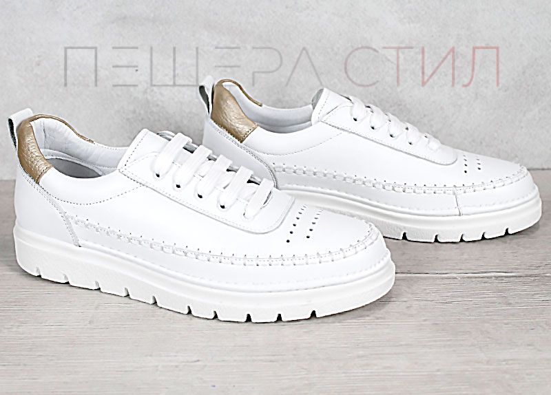 Стилни и удобни дамски обувки от естествена кожа в елегантно бяло, допълнени със златист детайл на петата. Олекотено шито ходило, перфорации за дишане и мека кожена стелка за несравним комфорт.