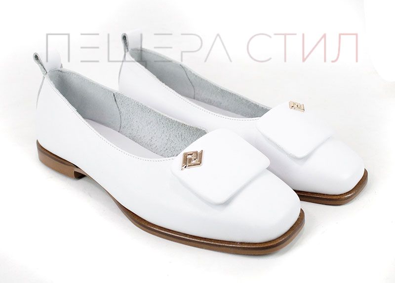 Дамски балерини от естествена кожа в бяло – модел Riviera