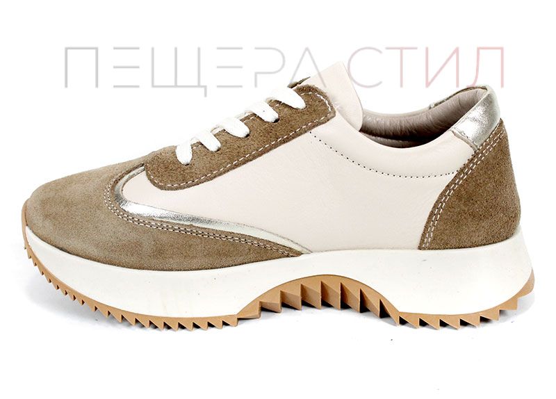 Дамски сникърси Eleganza Viso – естествена кожа и велур, бежови