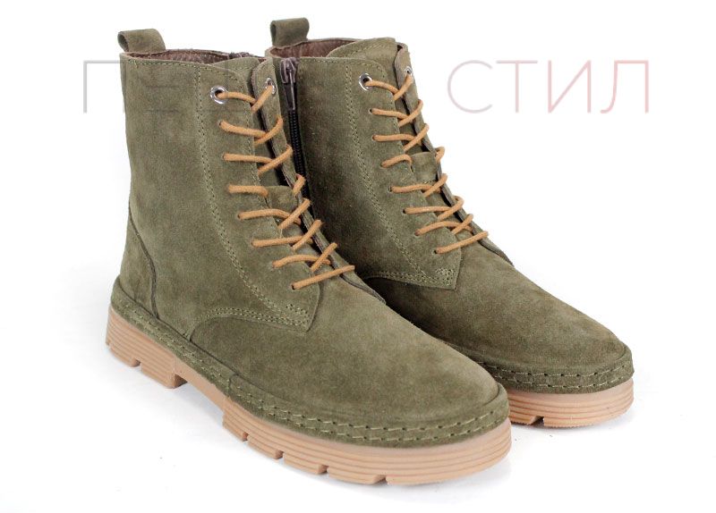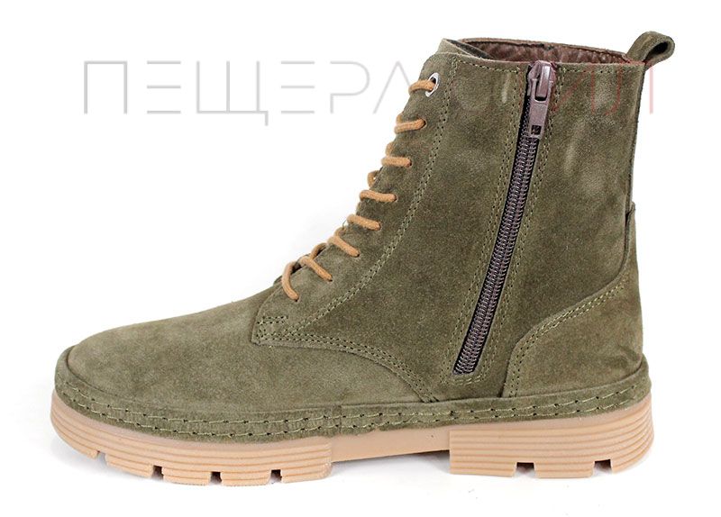 Модерни дамски кларкове от естествен зелен велур с връзки и цип, удобно и стабилно шито каучуково ходило.