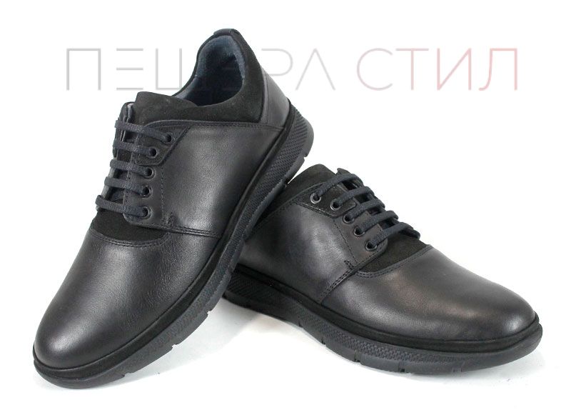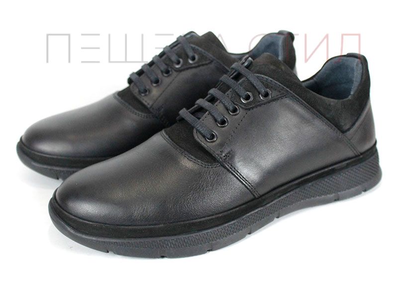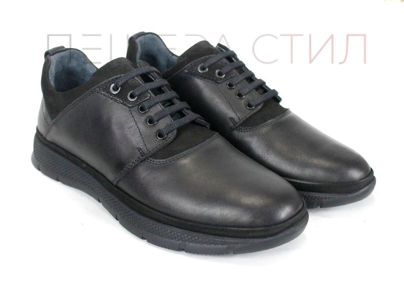 Мъжки ежедневни обувки от естествена кожа в черно - модел Strado