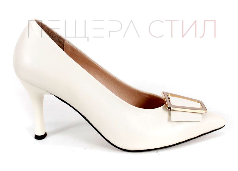 Стилни официални обувки от естествена кожа с висок тънък ток, модерна катарама и комфортна стелка – идеални за елегантни поводи.