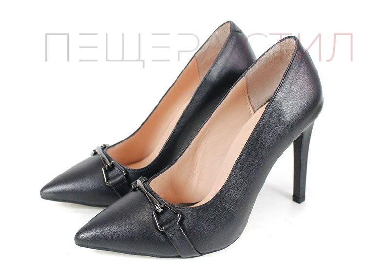 Nera са стилни дамски обувки от естествена кожа в черен цвят. Моделът е с висок ток, остър връх и фин декоративен акцент, със стелка и хастар от естествена кожа.