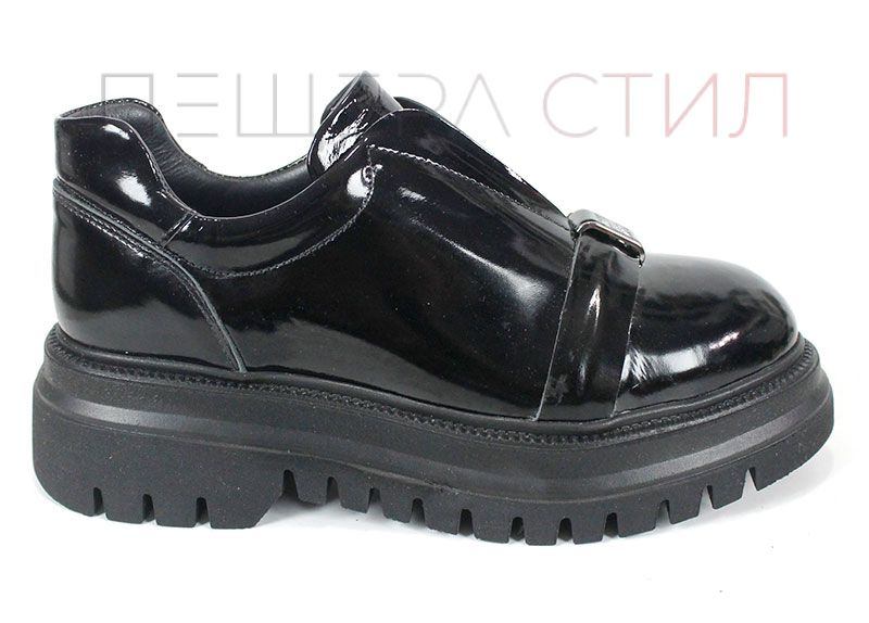 Дамски обувки Noir Elevato от черен лак с високо ходило и ластик