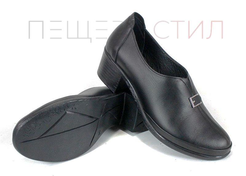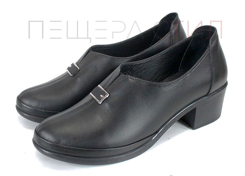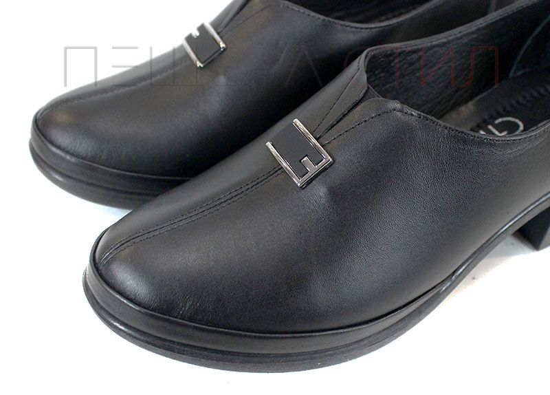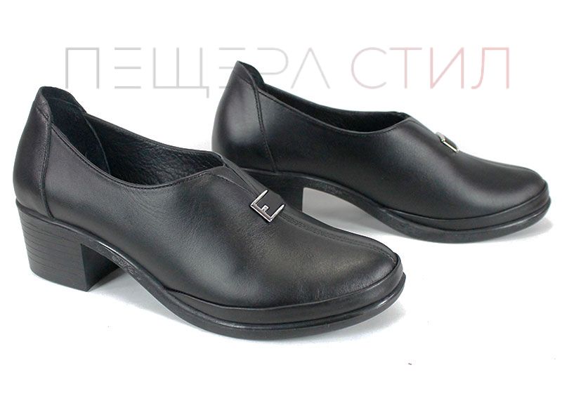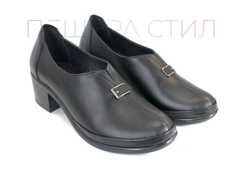 Елегантни дамски обувки Lusso Forte от естествена черна кожа със средно висок ток. Мека стелка и хастар от естествена кожа за удобство през целия ден.