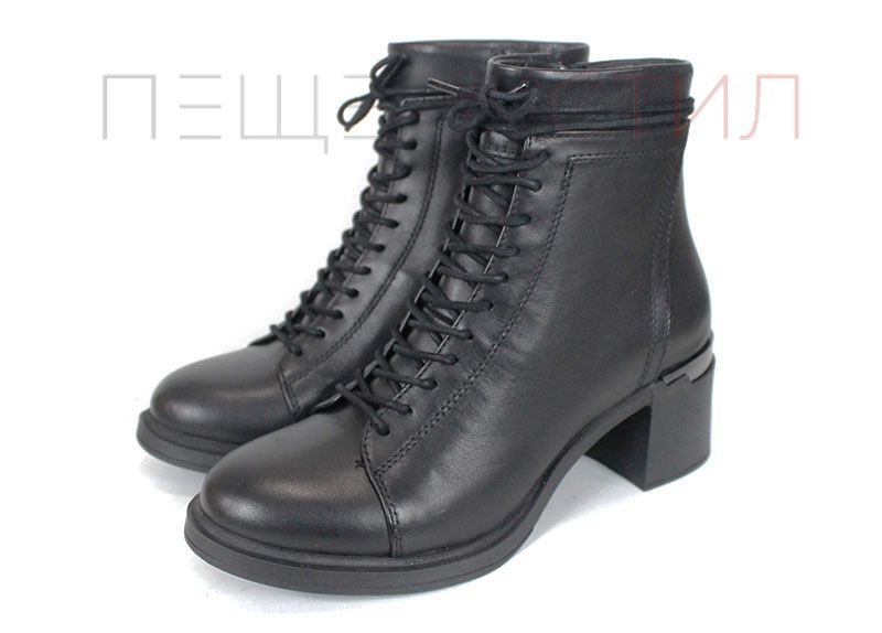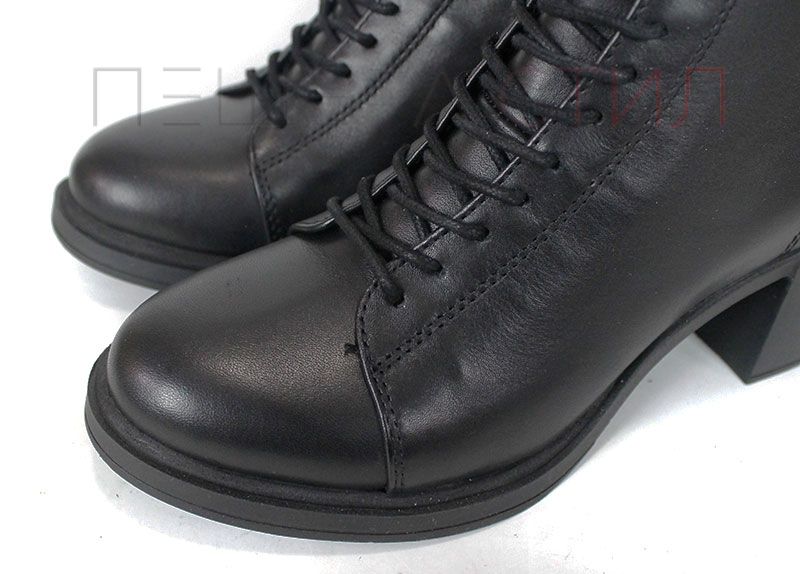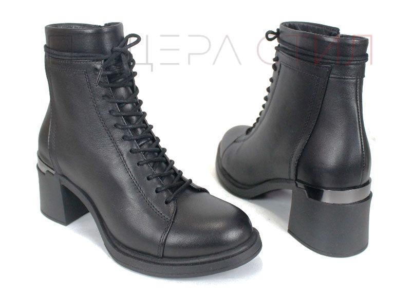 Ботите са със средно висок, стабилен ток, подходящ за ежедневна употреба и по-дълго носене, без компромис с удобството. Връзките отпред позволяват идеално прилягане към глезена, а страничният цип улеснява обуването. Ходилото е гумирано, леко и устойчиво на хлъзгане – перфектно за зимните месеци.