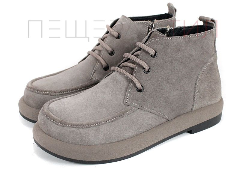 Стилни дамски кларкове от естествен велур в цвят визон – модел, който съчетава мекота, комфорт и непреходен дизайн. Linea Velluto впечатлява с изчистена форма, удобно равно ходило и гъвкава конструкция, която осигурява лекота при всяка стъпка. Перфектен избор за жени, които ценят практичната елегантност и естествените материали.
