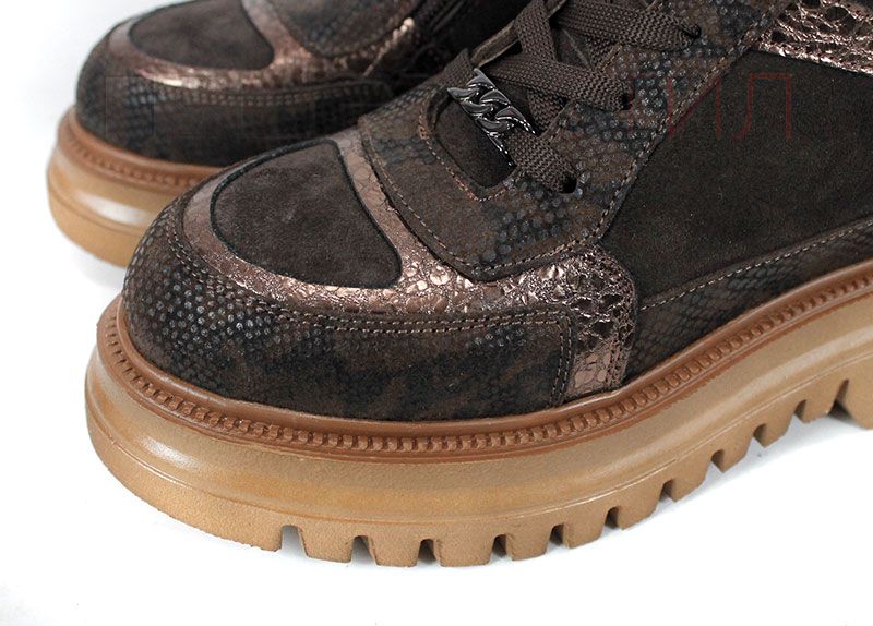 Bronza Forte – дамски спортни боти от естествена кожа и велур кафяв микс