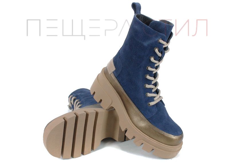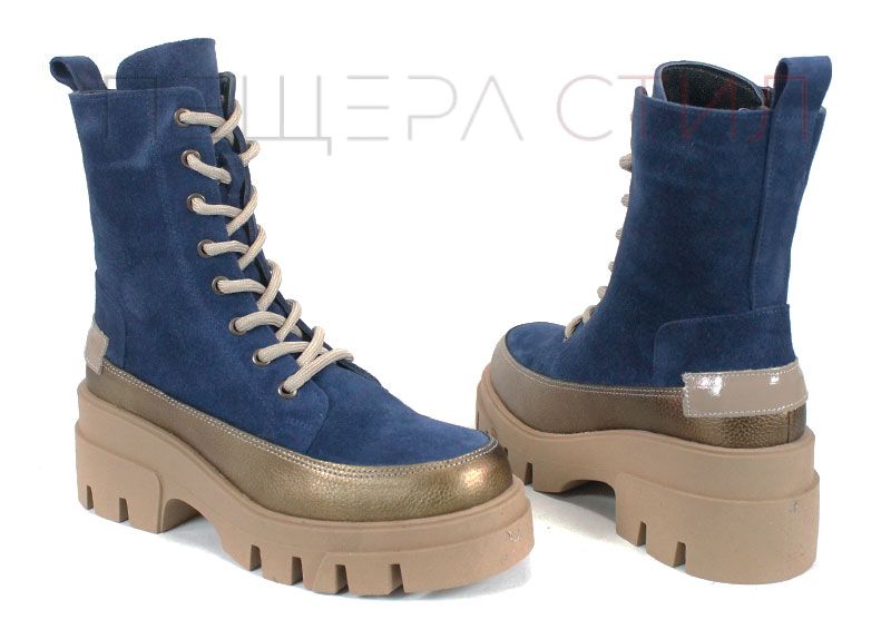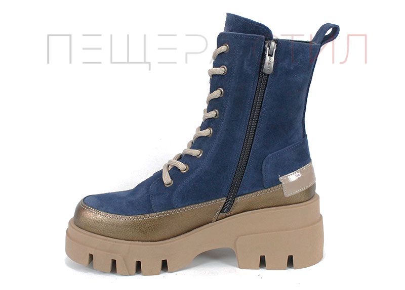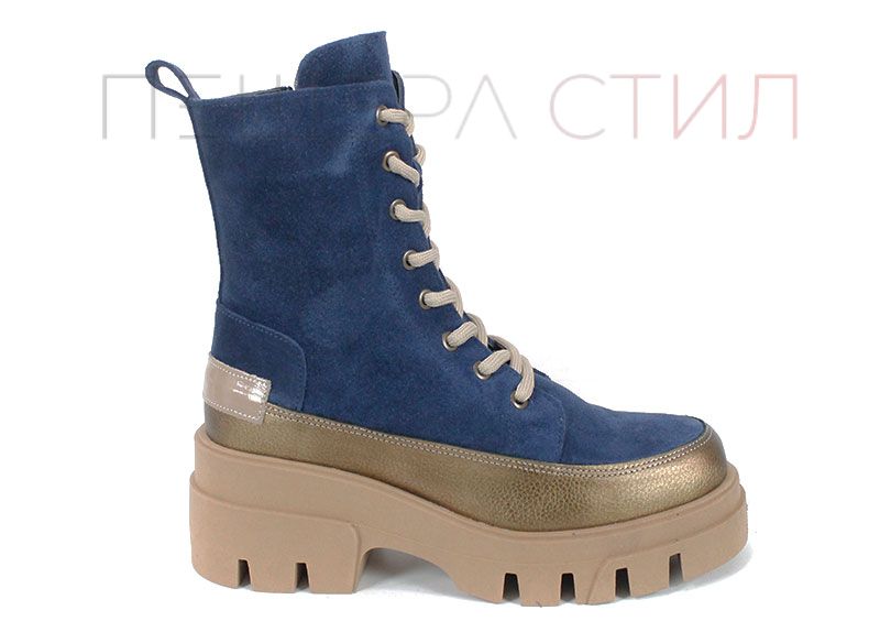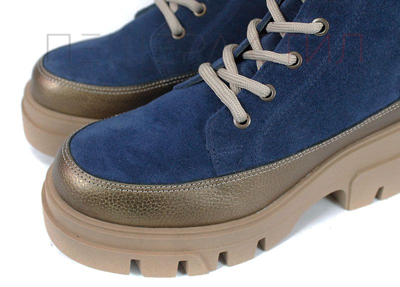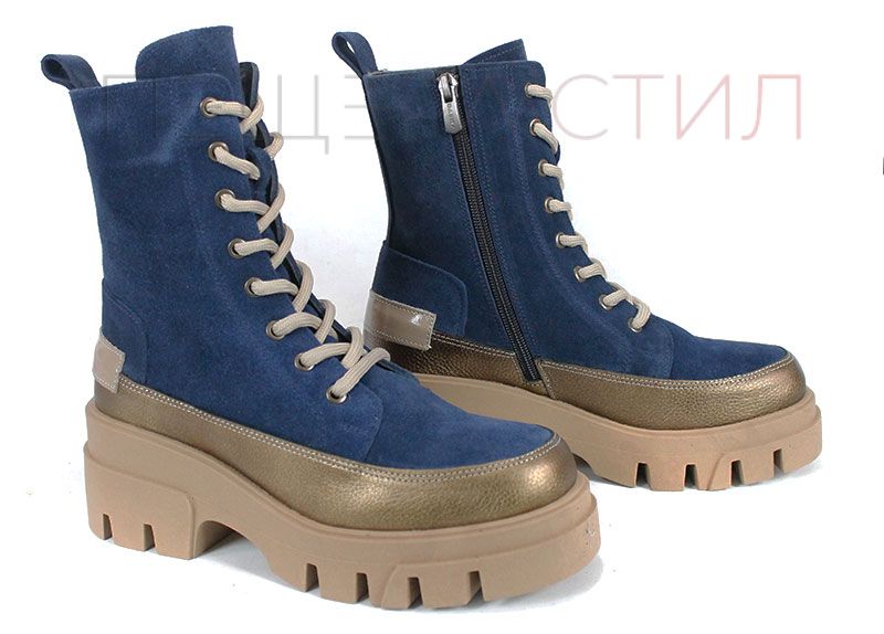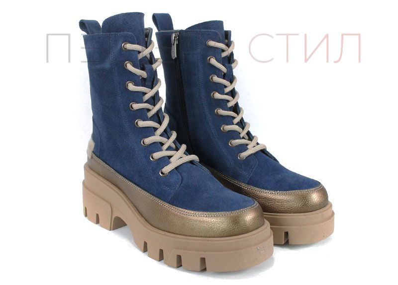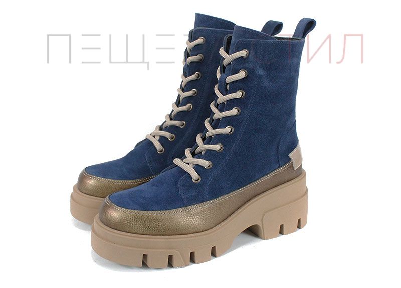 Luna Forte – дамски кубинки от естествена кожа и велур в златисто и синьо