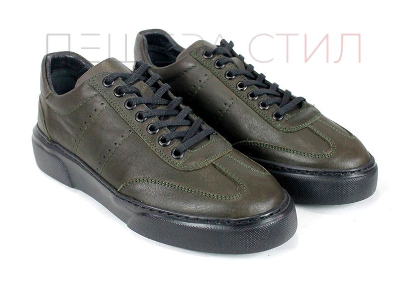 Мъжки обувки Cavero от естествена зелена кожа с черно ходило. Леки, удобни и стилни, със стелка и хастар от естествена кожа за комфорт през целия ден.