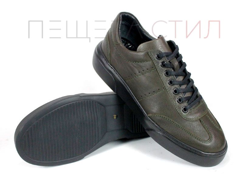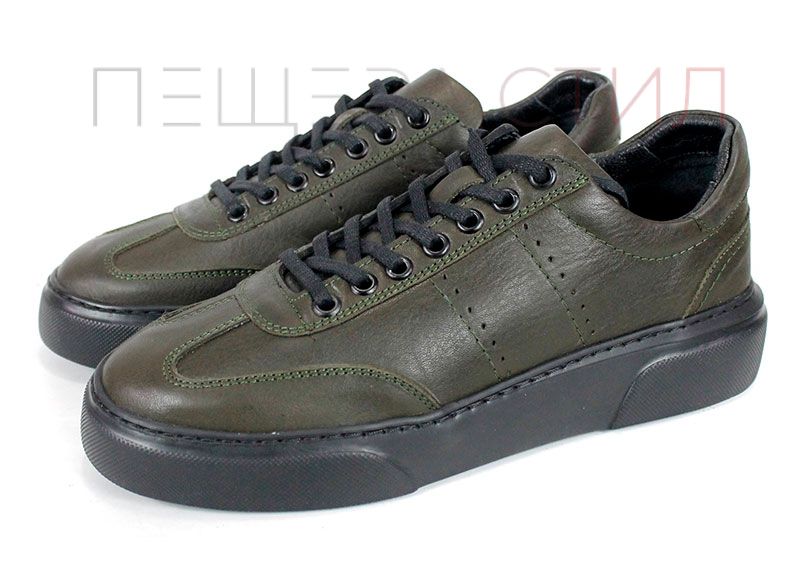 Мъжки ежедневни обувки от естествена кожа в зелено - модел Cavero