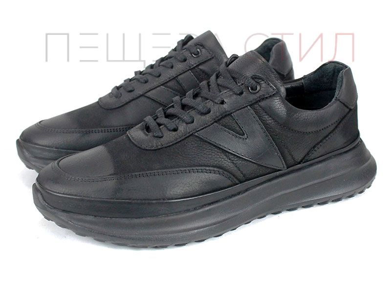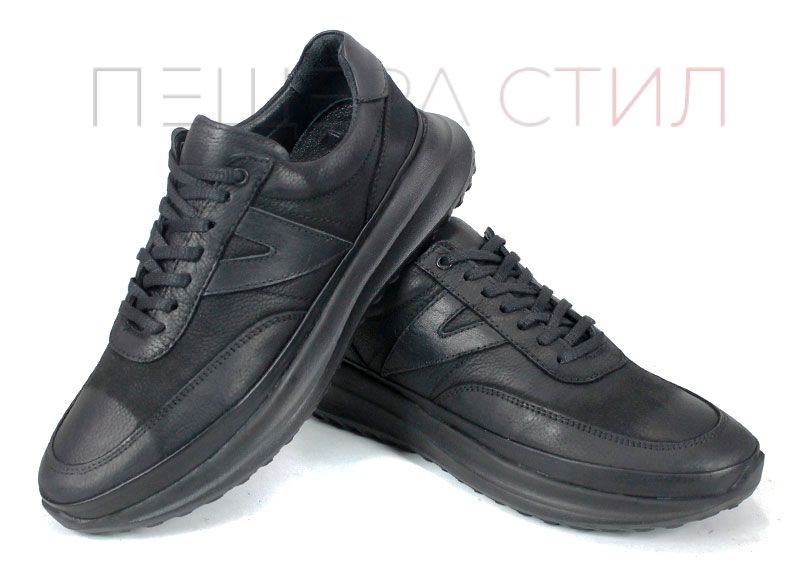 Мъжките обувки Делато впечатляват с изтънчен баланс между спортна лекота и градска елегантност. Горната част е комбинация от естествен набук и гладка естествена кожа, придаваща модерен вид с усещане за премиум качество. Черният цвят подчертава универсалния характер на обувките, а внимателно изработените шевове и стабилното ходило гарантират дълготрайност и комфорт.