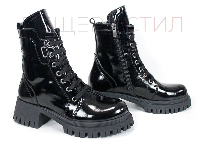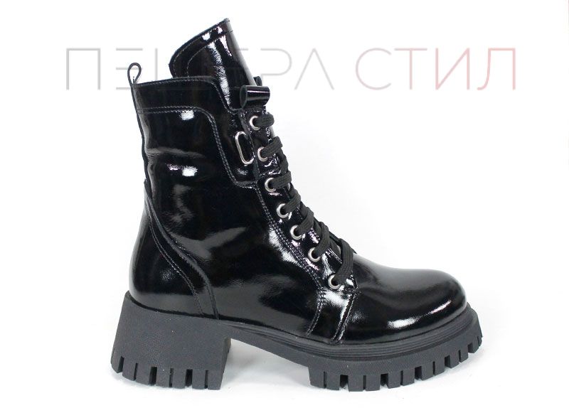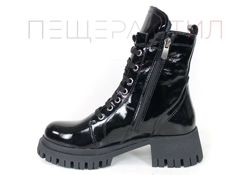 Luz Forte - дамски кубинки от естествен лак в черен цвят със стабилен ток и гъвкаво ходило със зимен грайфер. Моделът е топъл и удобен, благодарение на плюшения хастар и сигурното закопчаване с цип и връзки.