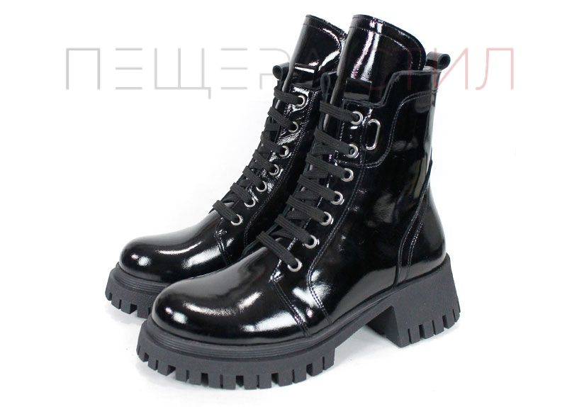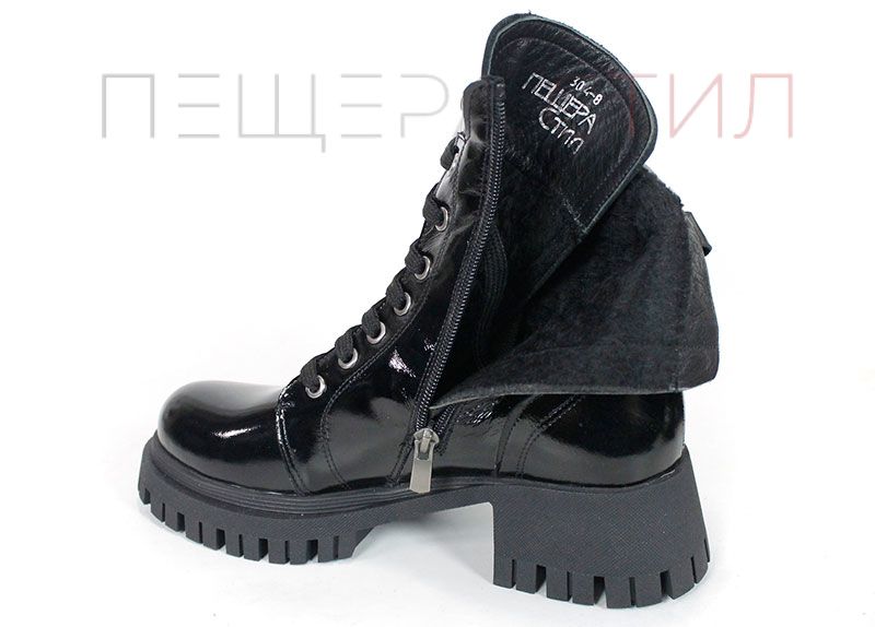 Дамски кубинки от естествен лак – черни, с ток и зимен грайфер - модел Luz Forte | Peshtera Stil