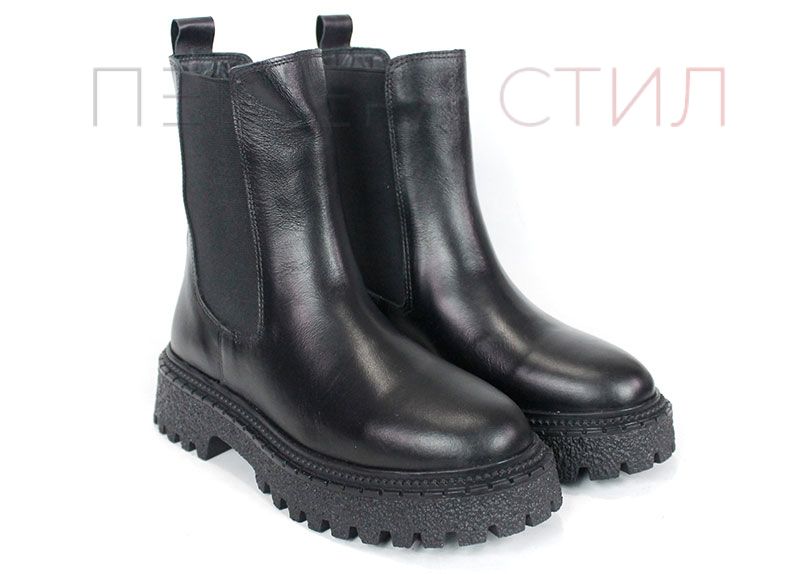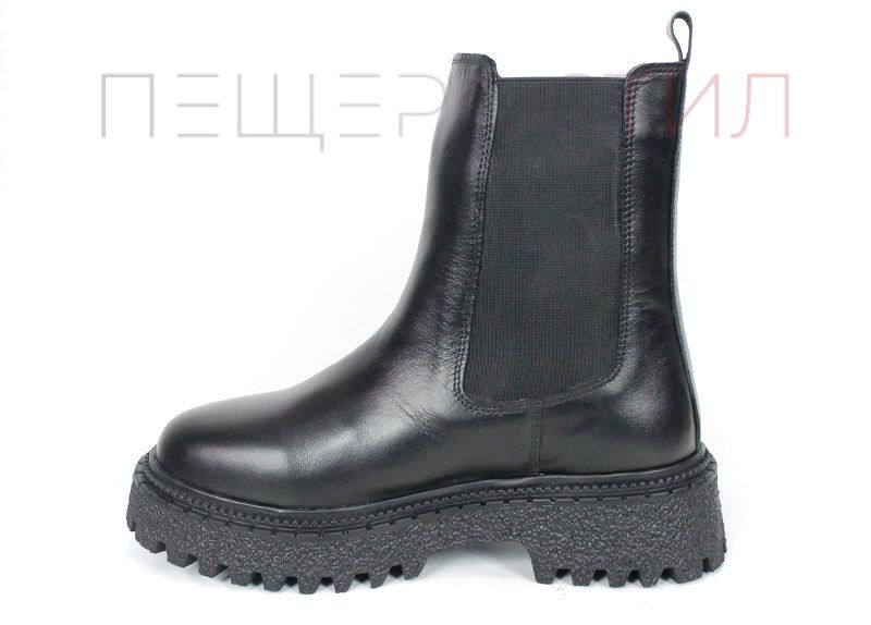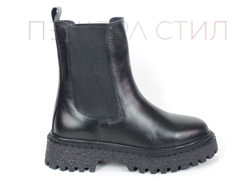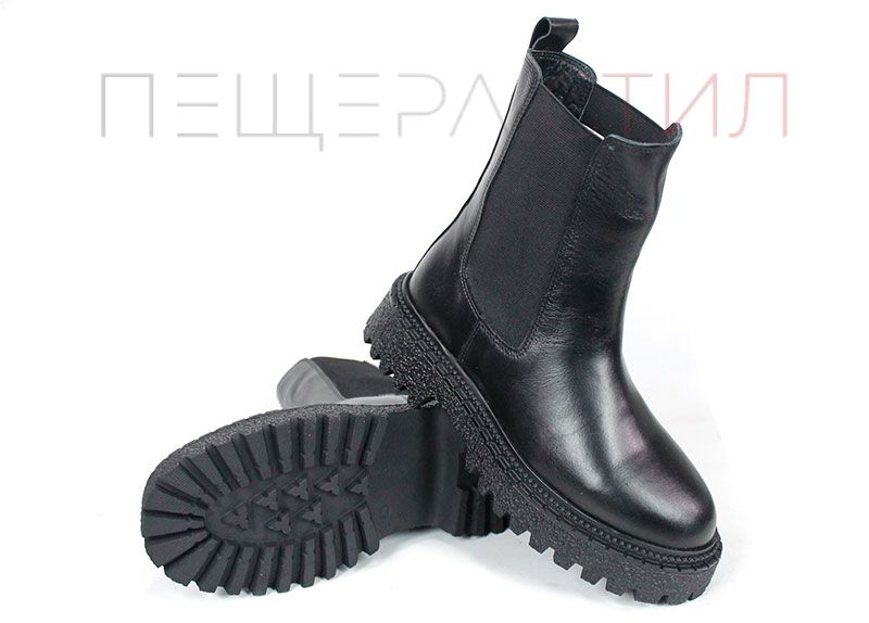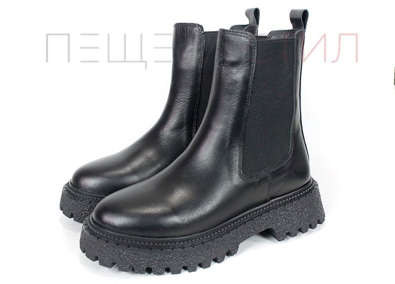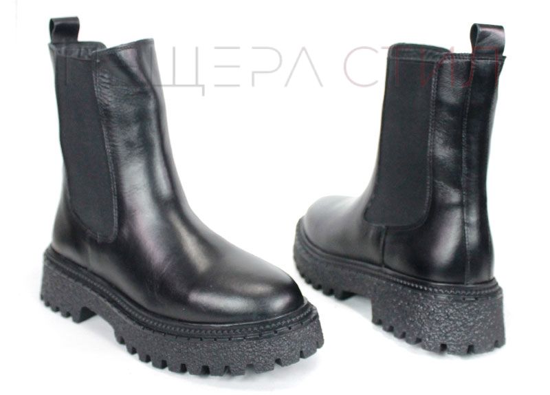 Елегантни дамски боти Terra Velluto, изработени от естествена черна кожа с еластични странични ластици и дебело зимно ходило. Удобен, модерен и практичен модел за ежедневието през студения сезон.