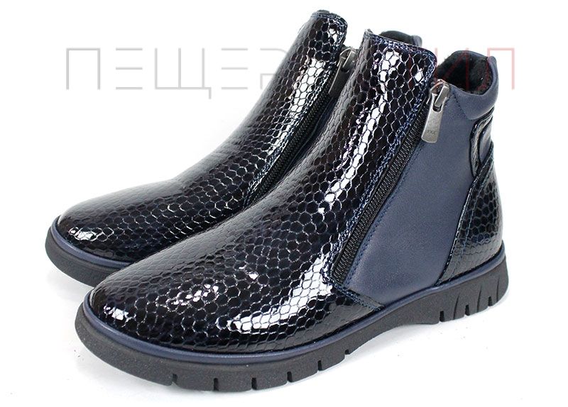 Дамски ниски боти Velina Forte от естествен лак и кожа – тъмносини
