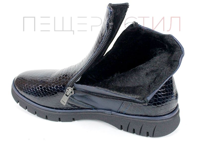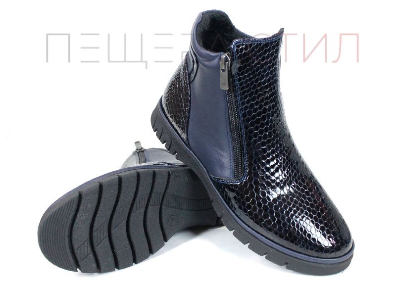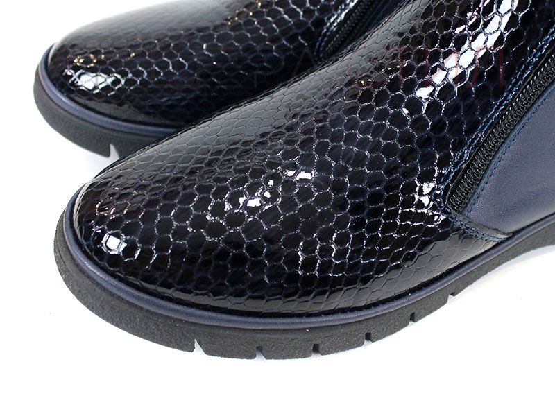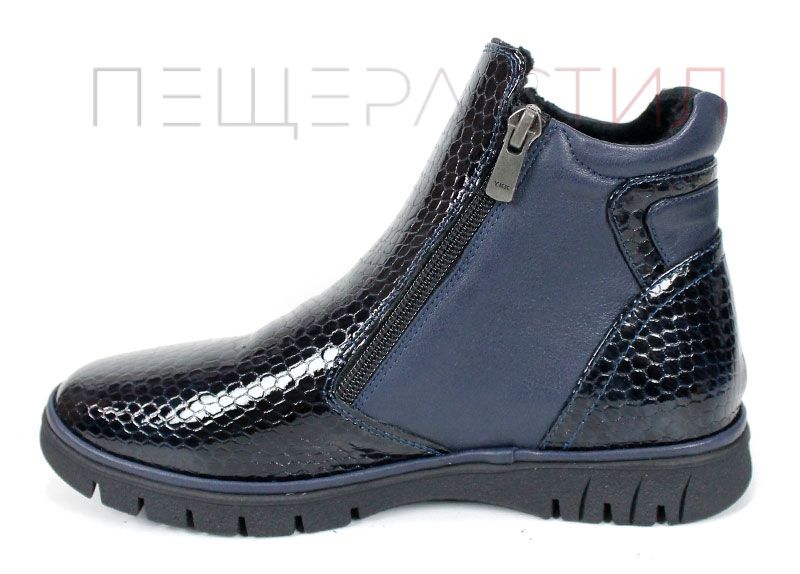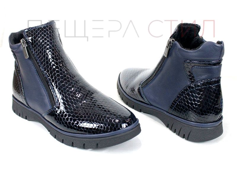 Модел Velina Forte в тъмносиньо комбинира стил, комфорт и практичност. Изработен от естествен лак и кожа с плюшен хастар, осигурява топлина и мекота през студените дни. Двата ципа гарантират лесно обуване и удобство при всяка крачка.