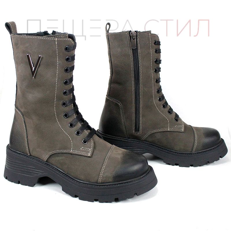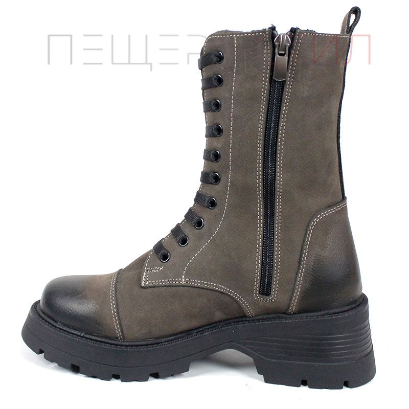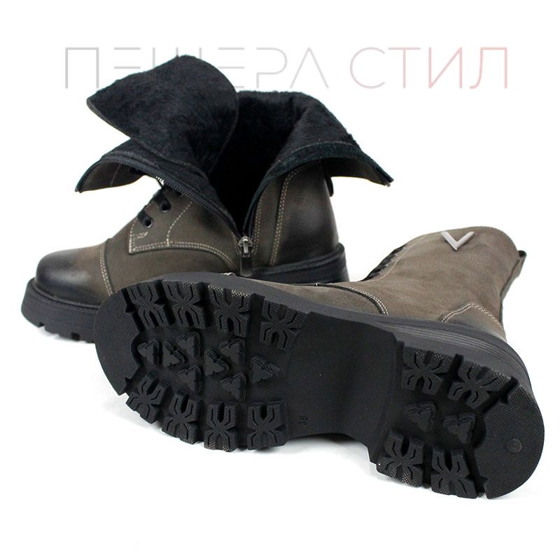 Модел от естествен набук в тъмно сив цвят, с грайферно зимно ходило, топла вътрешност и удобен страничен цип.